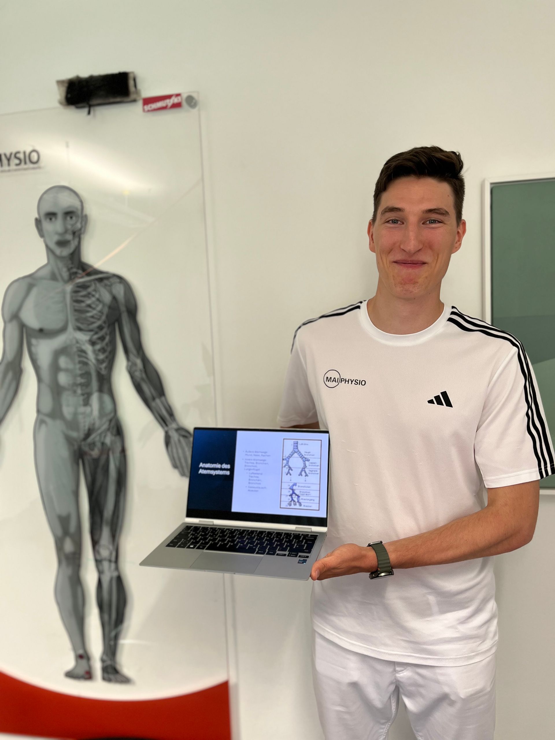 Den Anfang macht Felix. Er stellt uns die Inhalte der Atemtherapieschulung bei, welche wir wöchentlich für Patienten, im Rahmen eines Arztangebotes, im Ärztehaus Blasewitz anbieten.